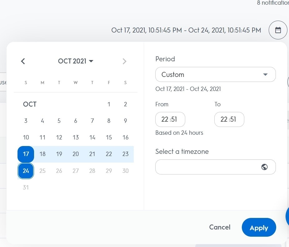You can track all actions performed on an account from January 2020 to the present. Events are available a few seconds after they occur. A maximum of 180 days of activity logs can be viewed at a time.