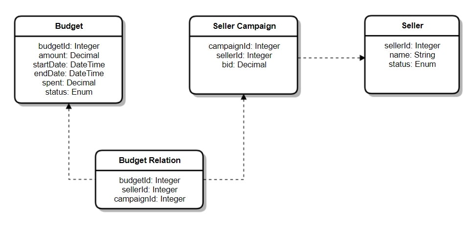 Budget - a budget limits the spending of a seller on one or more campaigns. It has an initial amount as well as a spent amount. It also has a start and end date. Clicks on an ad sold through a seller campaign are billed against the associated budget according to the negotiated rate. A budget may be consumed by multiple seller campaigns as long as they belong to the same seller.