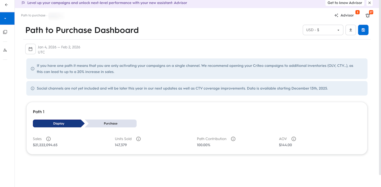 You can use the Path to Purchase report to validate your full-funnel strategy, guide future budget allocation, and align brand and performance teams around shared insights.