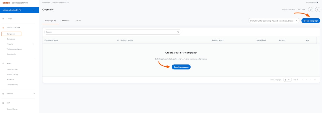 ようこそ画面で、最初のキャンペーンを作成するように求められます。